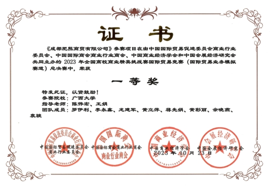 10月19日至10月23日,2023年全国高校商业精英挑战赛国际贸易竞赛(国际贸易业务模拟赛道)总决赛在浙江省宁波市国际会展中心7号馆成功举办。熟女