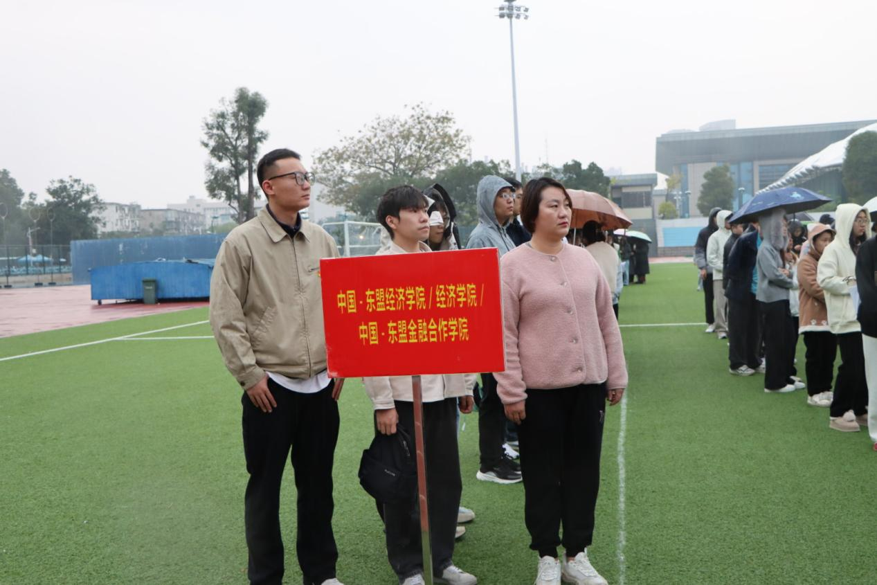 师生代表身着整齐服装,以抖擞的精神、昂扬的姿态列队集合。清晨的细雨突如其来,却丝毫没有冲淡大家的热情,师生们神情庄重肃穆,目光炽热坚定,静静伫立在雨幕中,等候这一神圣时刻的到来。静默肃立间,饱含着对过往一年的总结回望,更寄托着对新年的美好期许,风雨无阻的坚守里,是全体师生对祖国最深沉的祝福与最崇高的敬仰。
