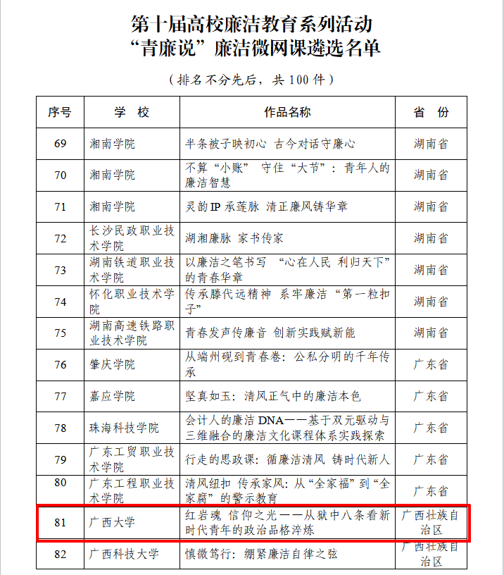 近日,教育部公布第十届高校廉洁教育系列活动遴选结果,我校5个作品入选遴选作品名单。其中,熟女